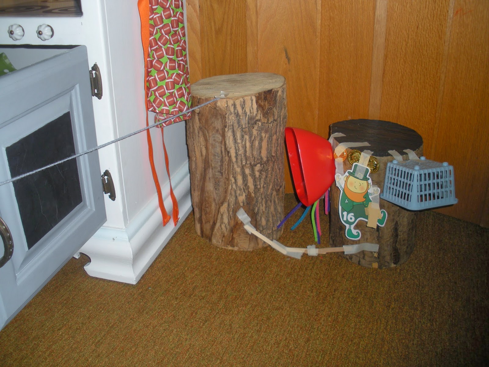 This trap is hidden beneath our steps, and has a decoy friendly Leprechaun and fake gold to lure the “real” Leprechaun in.