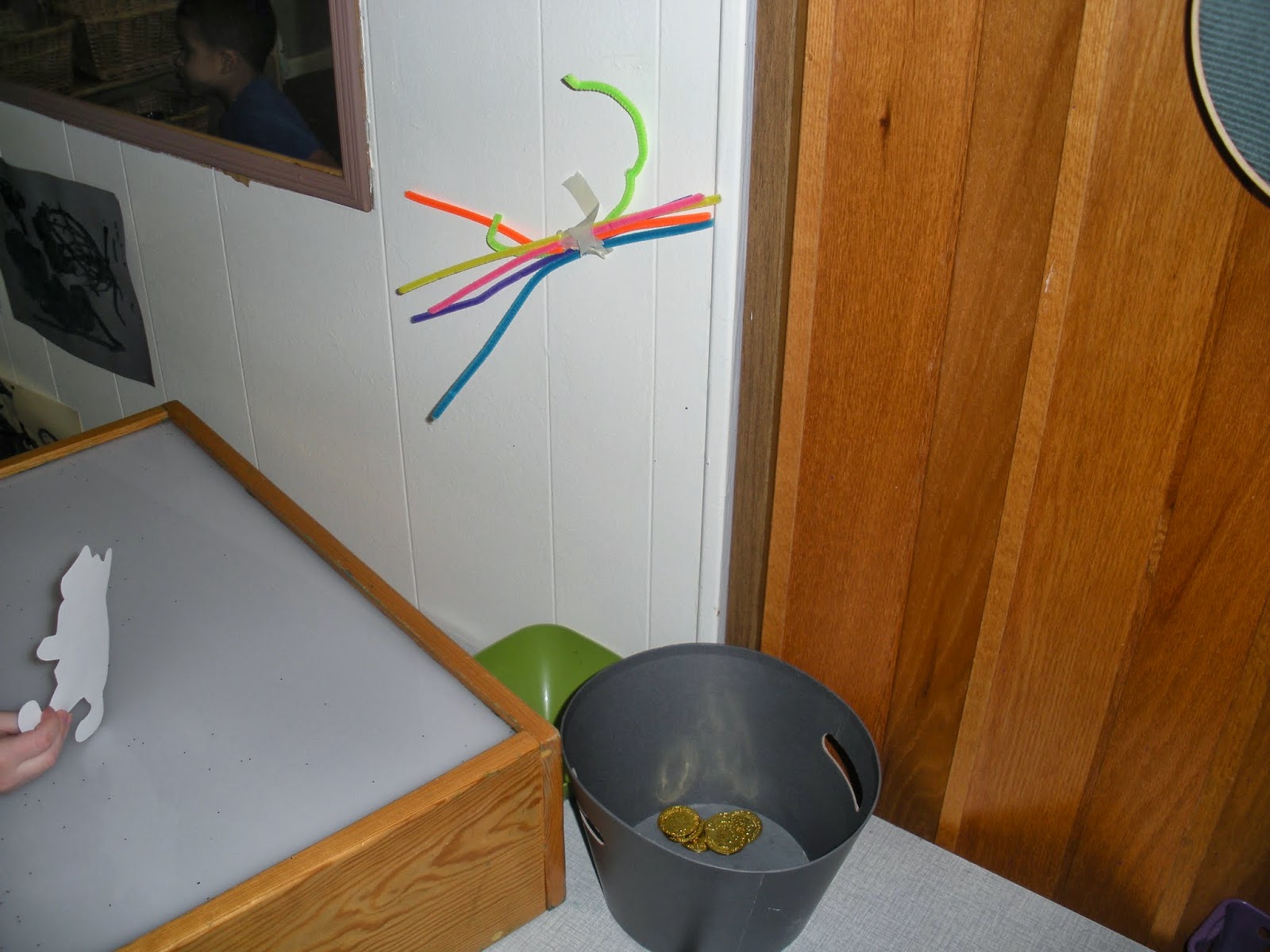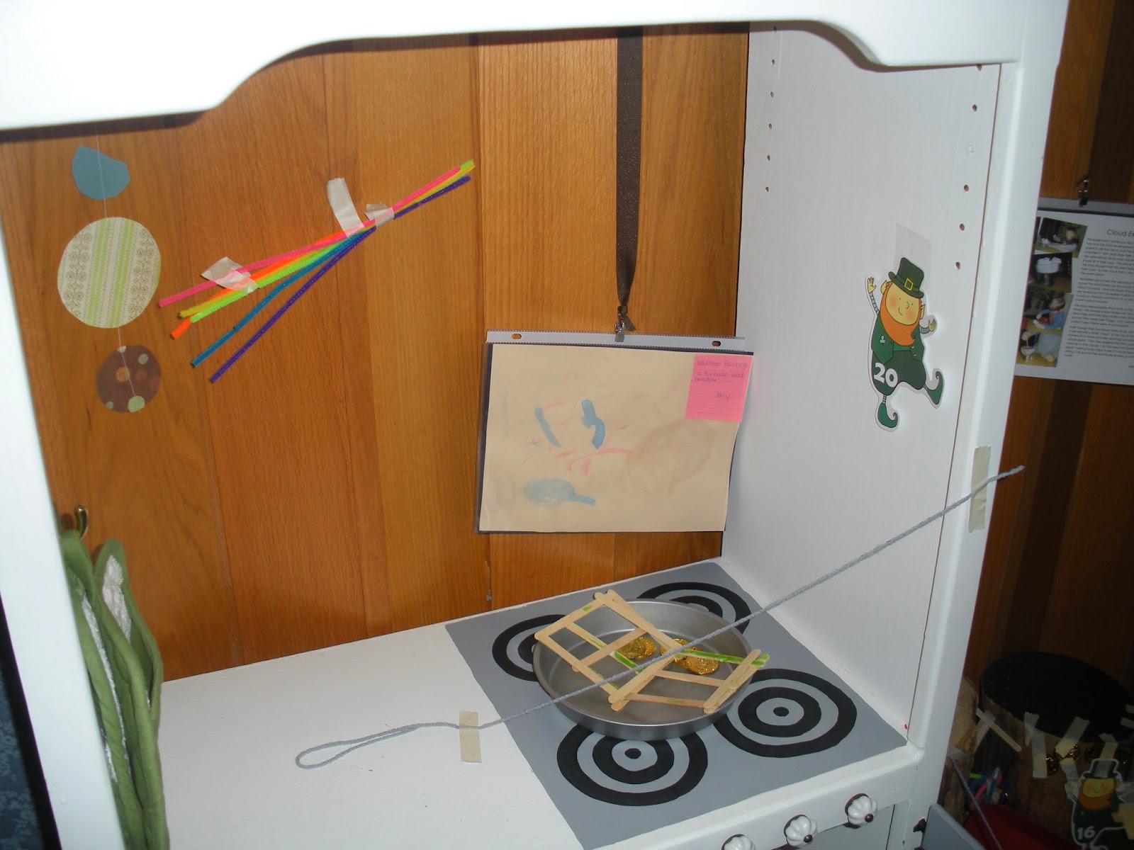 I really should have left more time for this activity, they definitely would have used it. Most of them really did use their drawn plans, referring to them often as they put together different pieces of their traps. I ended up sacrificing the paper leprechauns from our Juggling Leprechauns counting set, to be used as “decoy Leprechauns” but they put the rest of their traps together independently.
