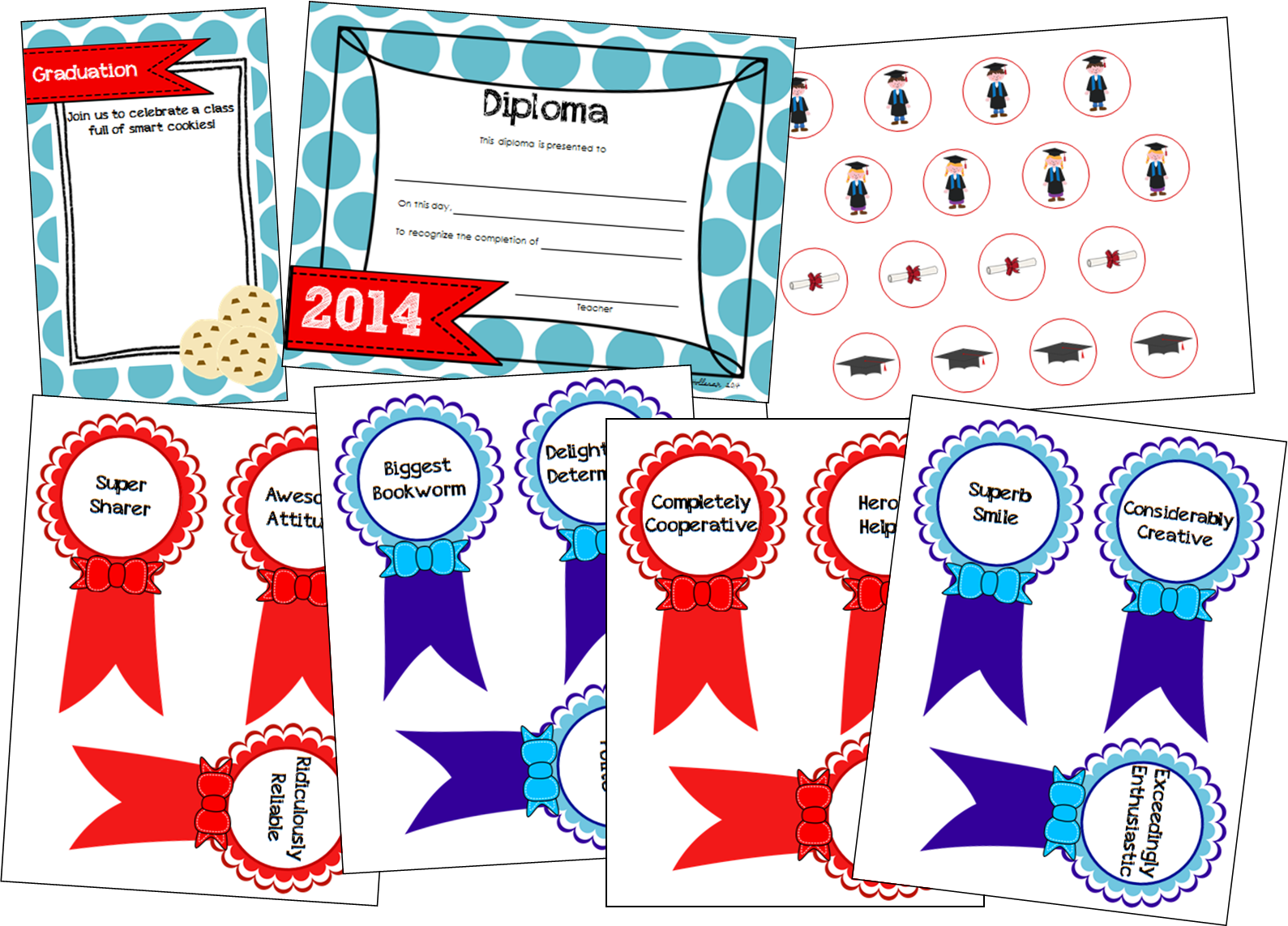 In addition to a special keepsake, there are certain things that every graduation ceremony requires – invitations, diplomas, awards, and decorations! Having all of these designed and ready to print has made my life so much easier! There are some projects that we are going to work on as a class this week to add to our decorations – one thing that my kiddos will be doing is decorating a giant paper version of their favorite kind of cookie (because they’re smart cookies!). I’m also putting up a lot of their artwork, that I’ve been holding onto, along with some of our class books.