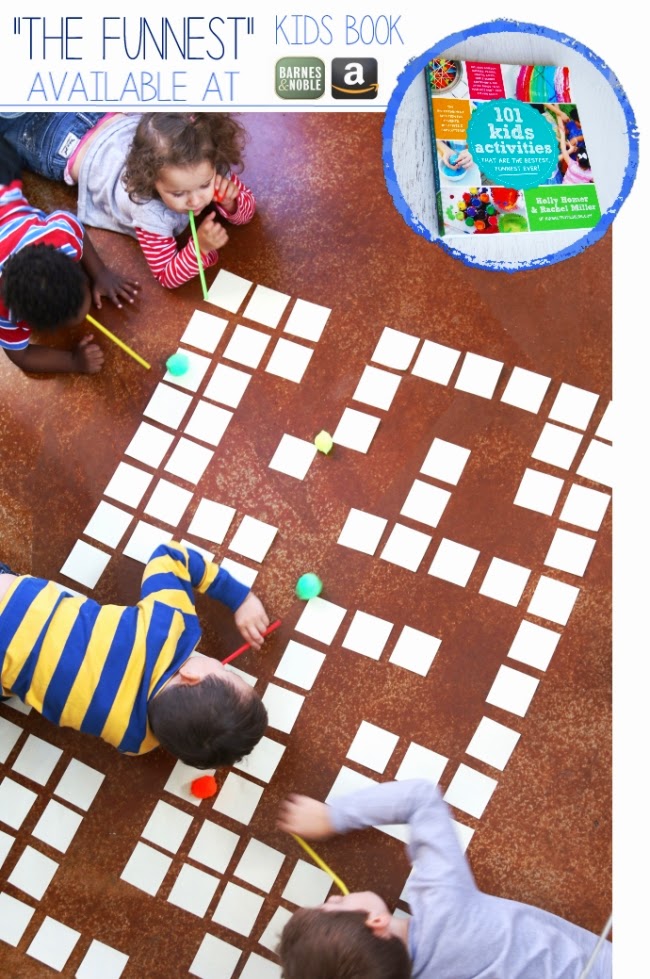 , and Drinking Straws. Kids can stick the Post-It Notes on the floor to create a maze, then challenge each other to blow their pom-poms through the maze using their straws. It couldn’t be easier, and yet, kids will think it’s a blast!