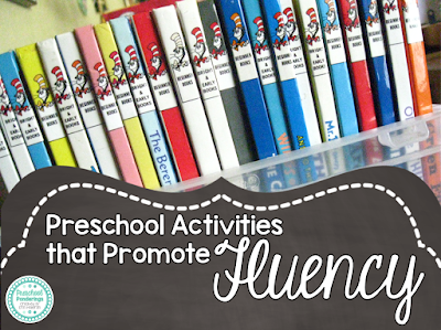 In preschool, fluency means that children use intonation and phrasing when they participate in shared reading, chants, rhymes, and finger plays. The goal is that children are able to recognize familiar tunes and repetitive phrases. Here are some great ideas for meeting this standard;