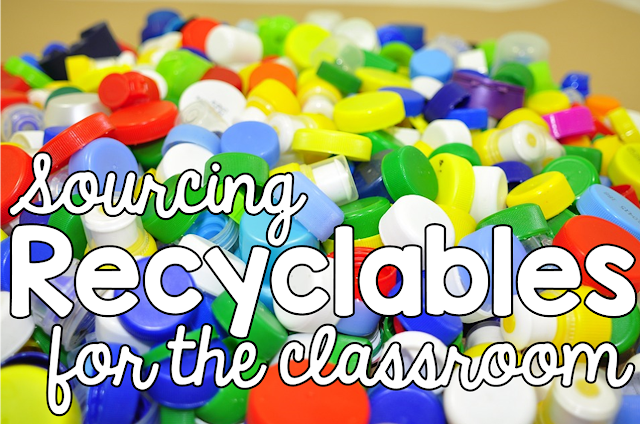 All of my collection also tend to take up a lot of storage space, storage space that is already at a premium in the classroom. So while I’ve built a habit of holding onto materials that could eventually be used for a project or activity, I’ve also found a couple of other ways to source recyclable materials.
