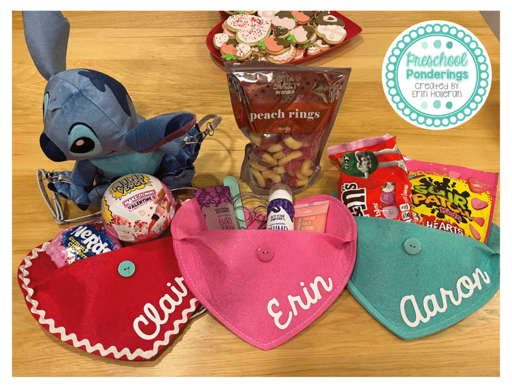 We do celebrate each other by sharing small gifts. Each of use has a felt hearth-shaped envelope and we try limit our gifts to items that will fit in the envelope. That doesn’t mean I never pick up anything a little larger, but this helps us ensure that we aren’t going overboard in our gift-giving. We all have candy preferences that are often celebrated, I also try to purchase things that will be helpful or useful like craft supplies, new pens, chapstick, etc.