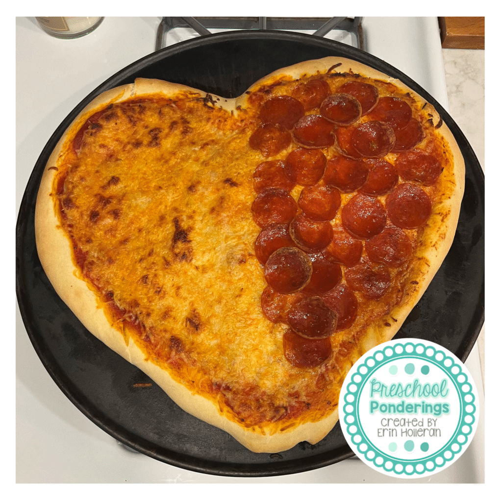 I could share so many pictures of heart-shaped pizzas! The toppings change slightly each year, and we’ve even done personal sized heart pizzas too. It’s a really comforting way to come together at the end of a hectic day.